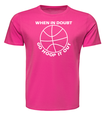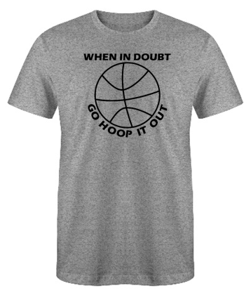 Playing basketball can be very fun. Do you have the urge to just go shoot some hoops? The WHEN IN DOUBT GO HOOP IT OUT t-shirt is a great shirt to wear and show your love for the game of basketball. This t-shirt can also be a great gift for your friends and family. Grab one or several today before they're gone!