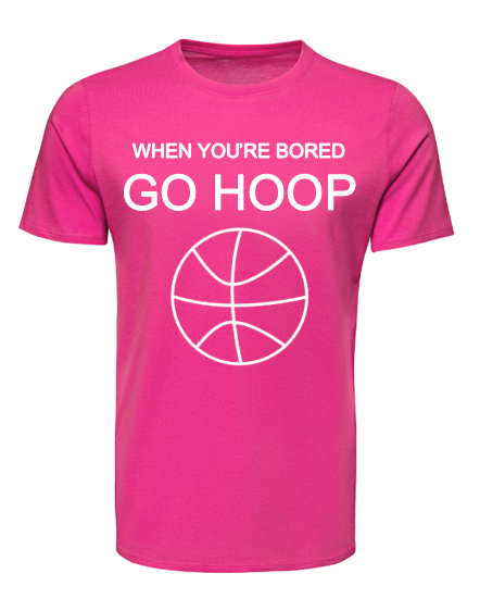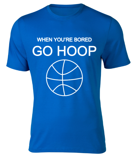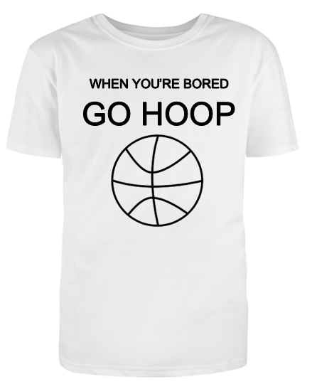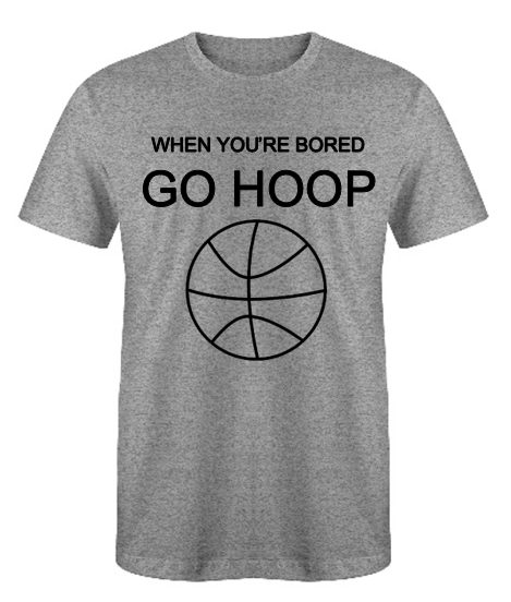 When you get bored why not go shoot some hoops on the basketball court? It can clear your mind and it gets you active. The WHEN YOU'RE BORED GO HOOP t-shirt is a funny shirt to just encourage you to get a little exercise. This t-shirt can also be a great gift for your friends and family. Grab one or several today before they're gone!